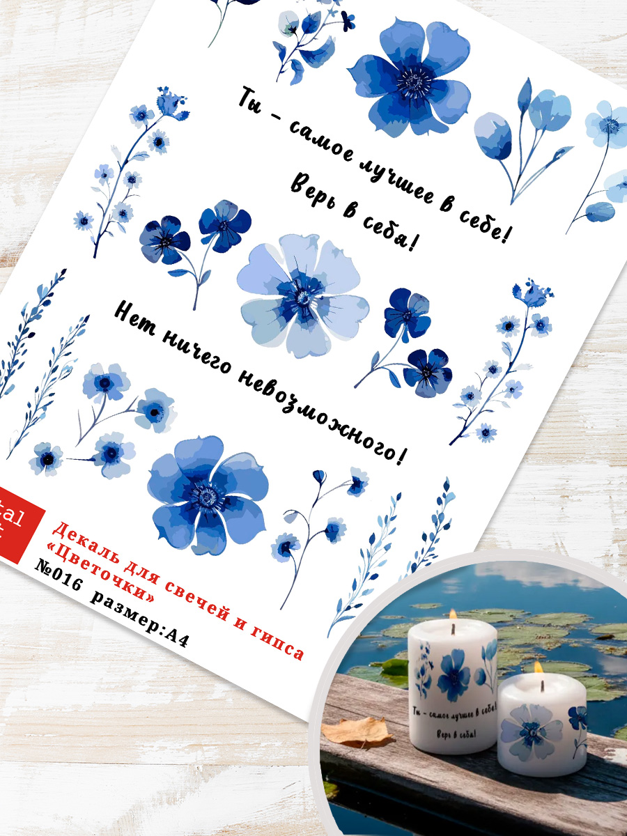 Декали для свечей и гипса – это стильный и функциональный инструмент для декора, который открывает широкие возможности для творчества. Они представляют собой универсальный материал, способный преобразить не только свечи и гипсовые изделия, но и керамику, стекло, дерево, пластик и другие поверхности. Благодаря гибкой и тонкой структуре декали легко адаптируются к форме изделия, обеспечивая качественное прилегание даже на сложных участках. Пленка с устойчивым покрытием легко наносится, сохраняя яркость и четкость рисунка на длительное время.
