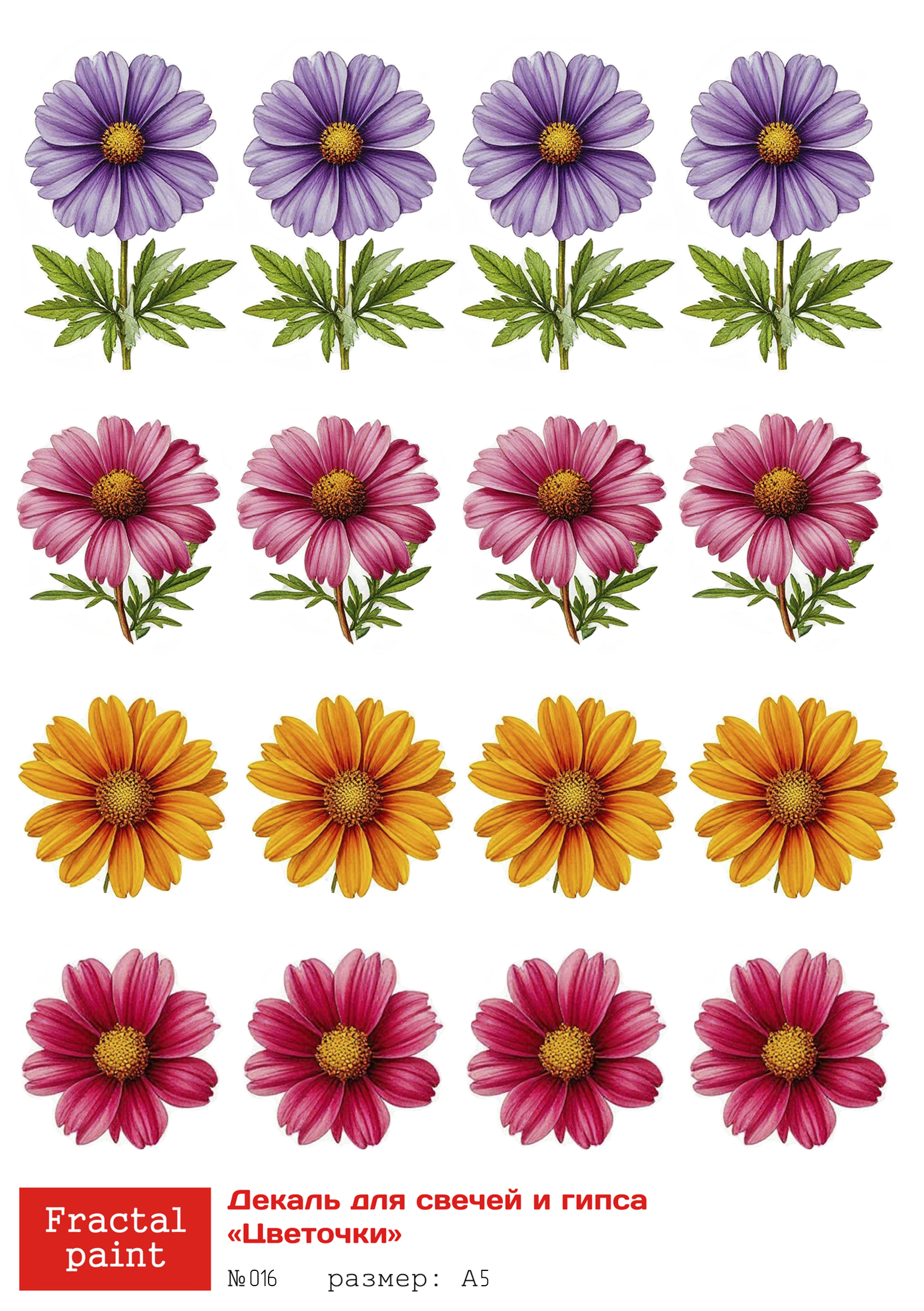 Трансфер переводной - декаль для свечей и гипса цветочки 016 А5