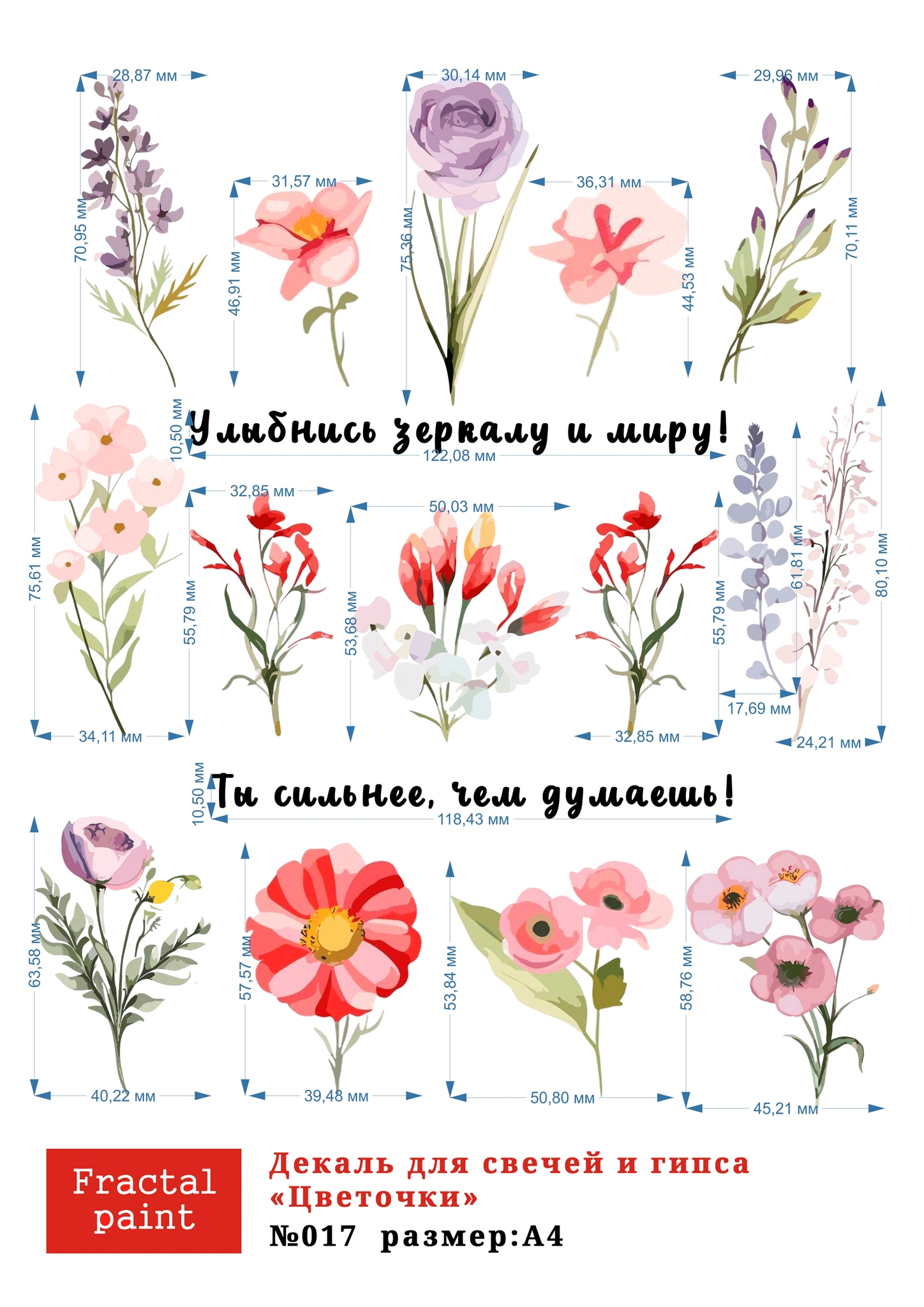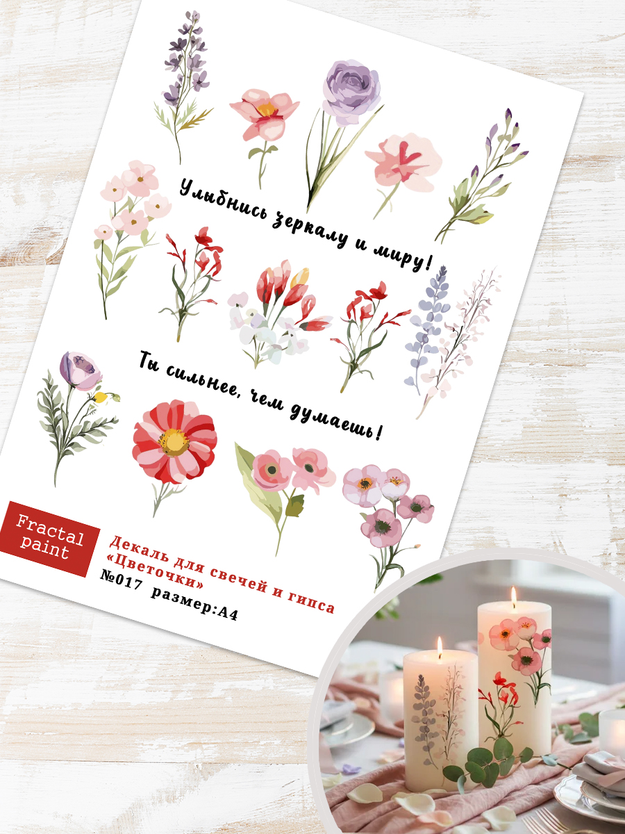 Трансфер переводной - декаль для свечей и гипса цветочки 017