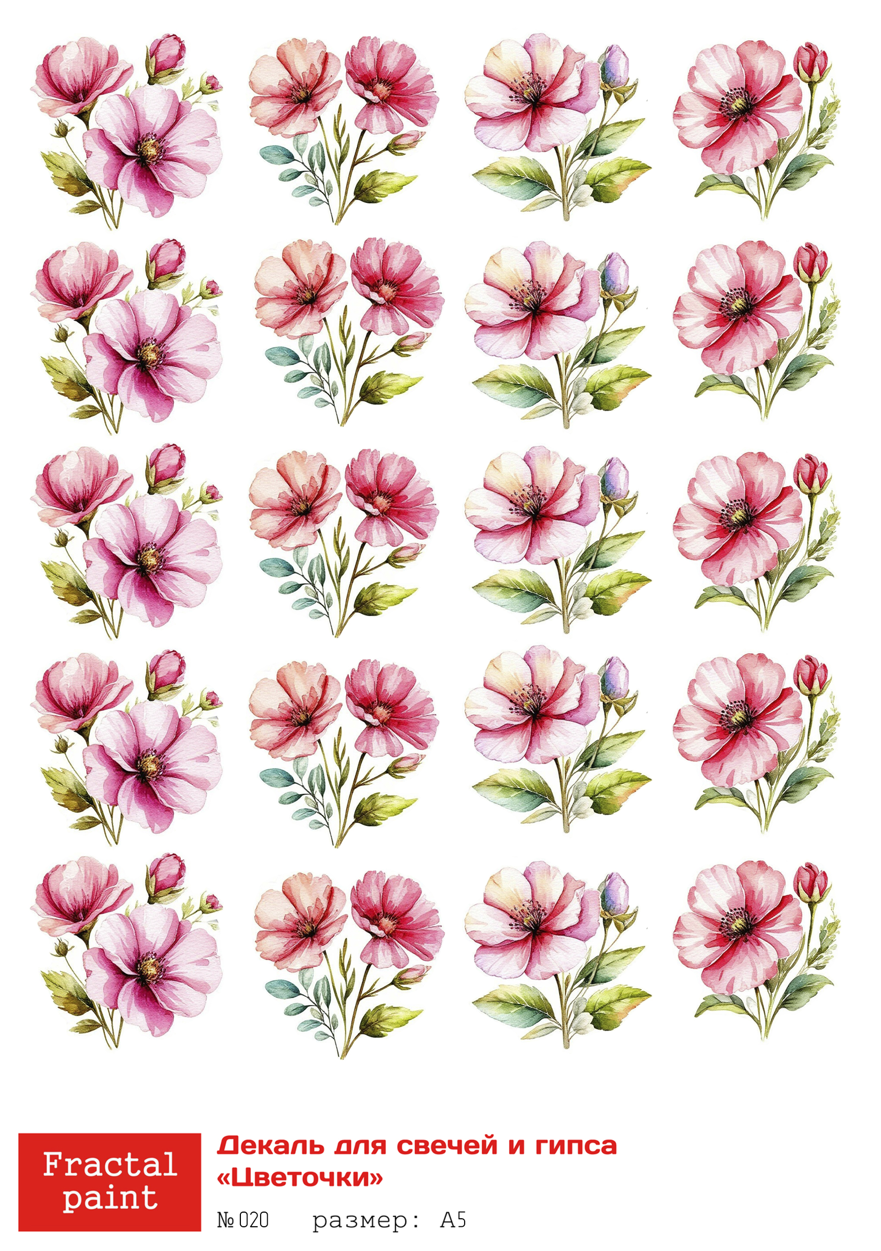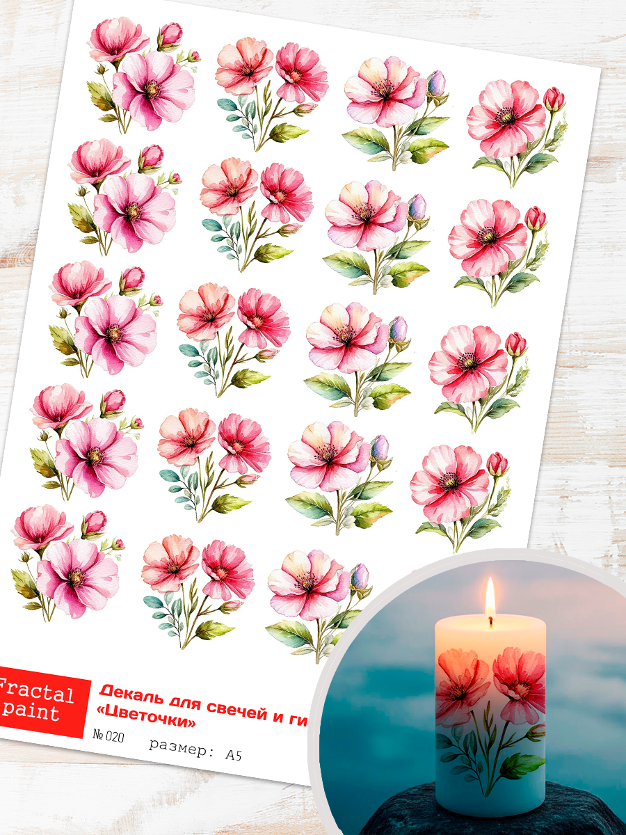 Трансфер переводной - декаль для свечей и гипса цветочки 020 А5