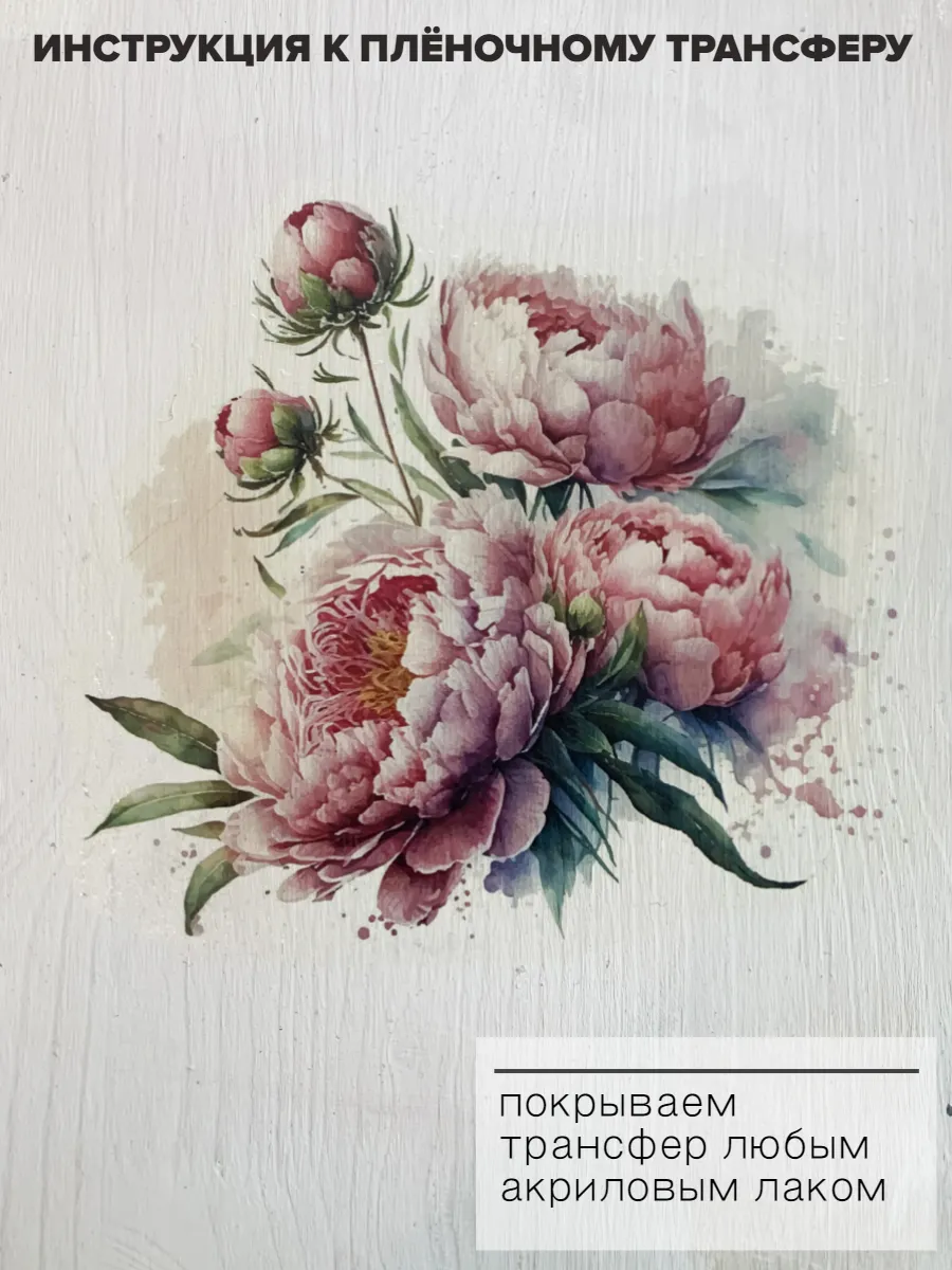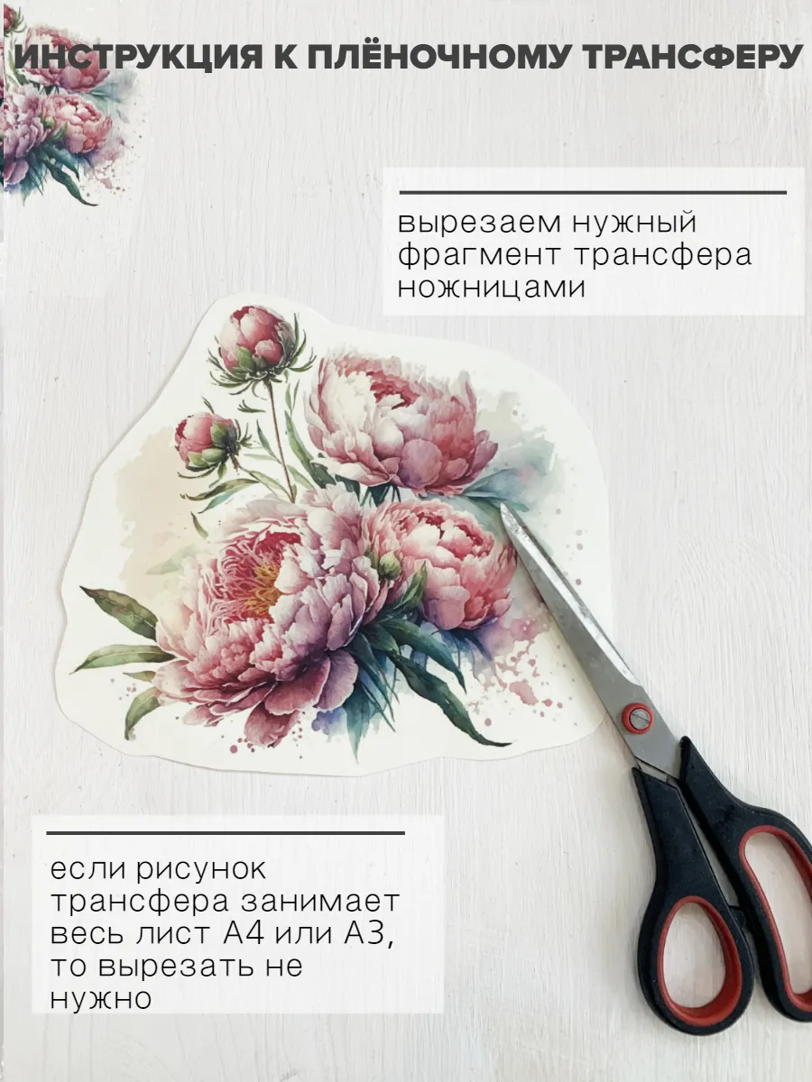 Применение: приготовьте прозрачный полиэтиленовый файл по размеру изображения. Вырежьте нужное вам изображение и положите на файл, перевернув рисунком вниз. Смочите водой поверхность бумажной основы с помощью губки или спонжа, подождите 10 секунд, дайте основе пропитаться водой. Затем приложите изображение к поверхности и, плотно прижимая пальцами бумажную основу, сдвигаете ее на себя. Рисунок остается на изделии. Сразу после нанесения удалите лишнюю влагу и воздух бумажным полотенцем или кусочком сухой ткани. После чего покройте изображение любым покрывным лаком. Отлично подойдет акриловый лак на водной основе, матовый, глянцевый, полуглянцевый.