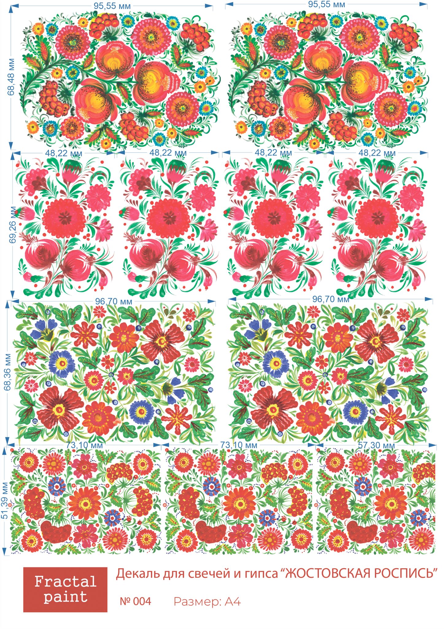 Трансфер переводной - декаль для свечей и гипса жостовская роспись 004