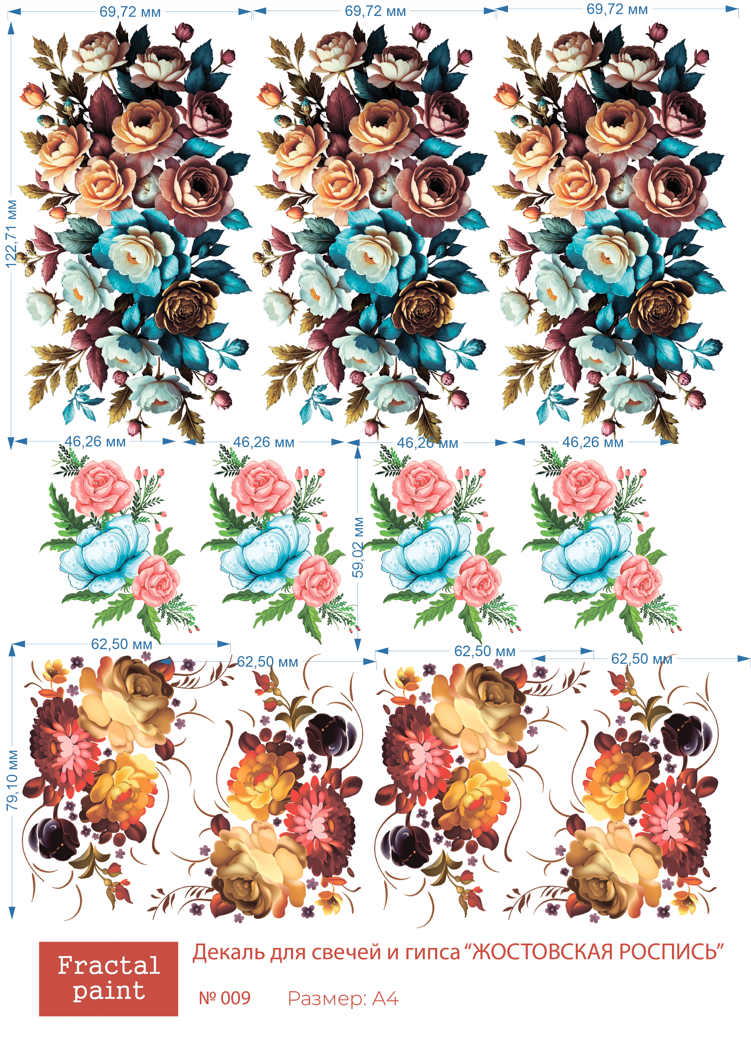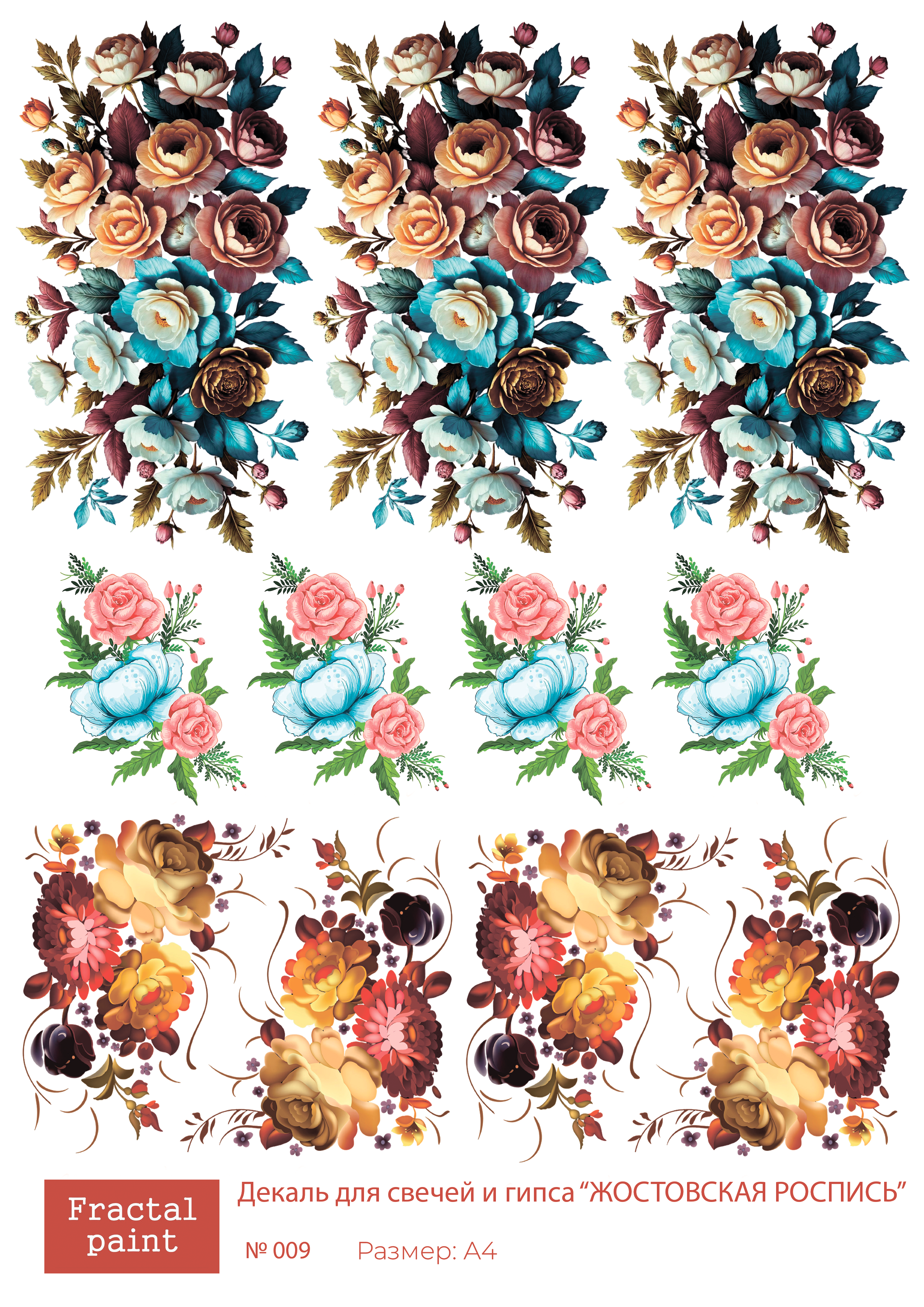 Трансфер переводной - декаль для свечей и гипса жостовская роспись 009