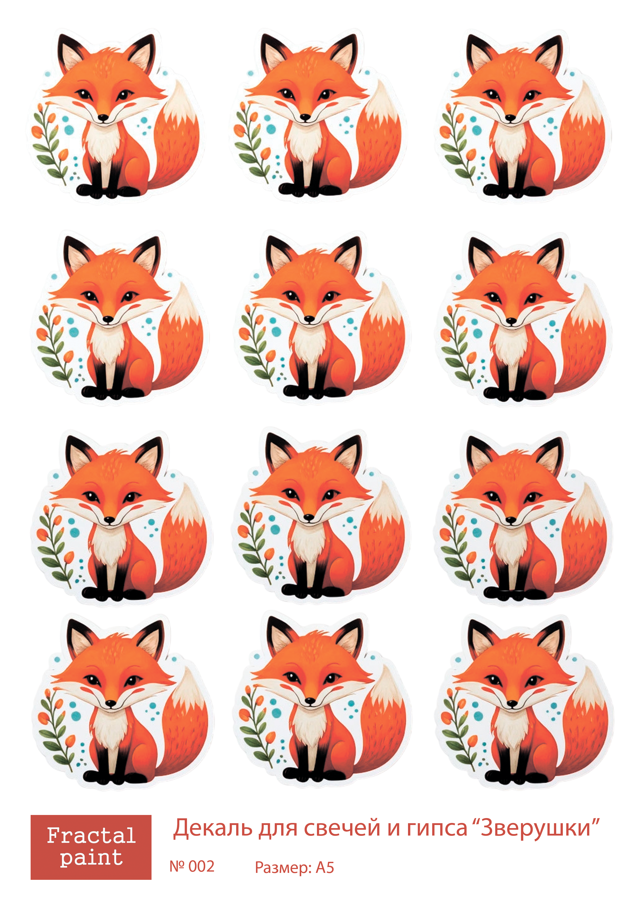 Трансфер переводной - декаль для свечей и гипса зверушки 002 А5