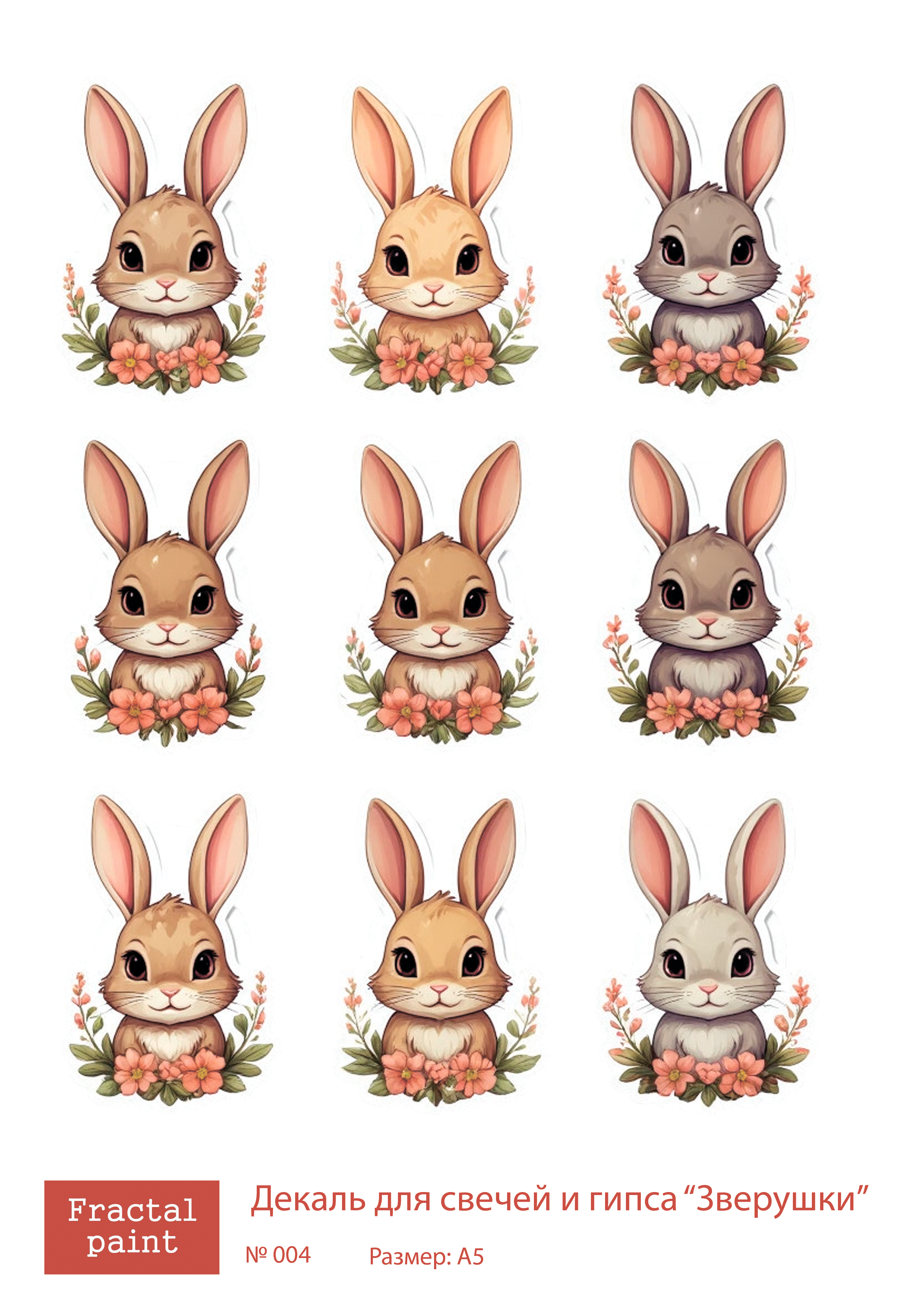 Трансфер переводной - декаль для свечей и гипса зверушки 004 А5