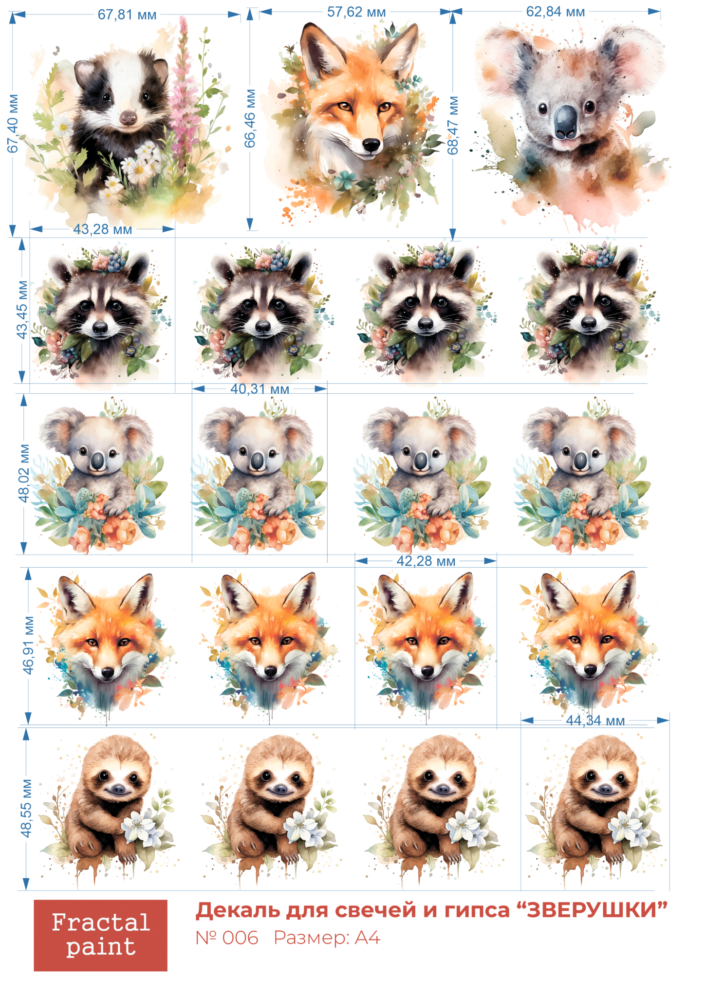 Трансфер переводной - декаль для свечей и гипса зверушки 006