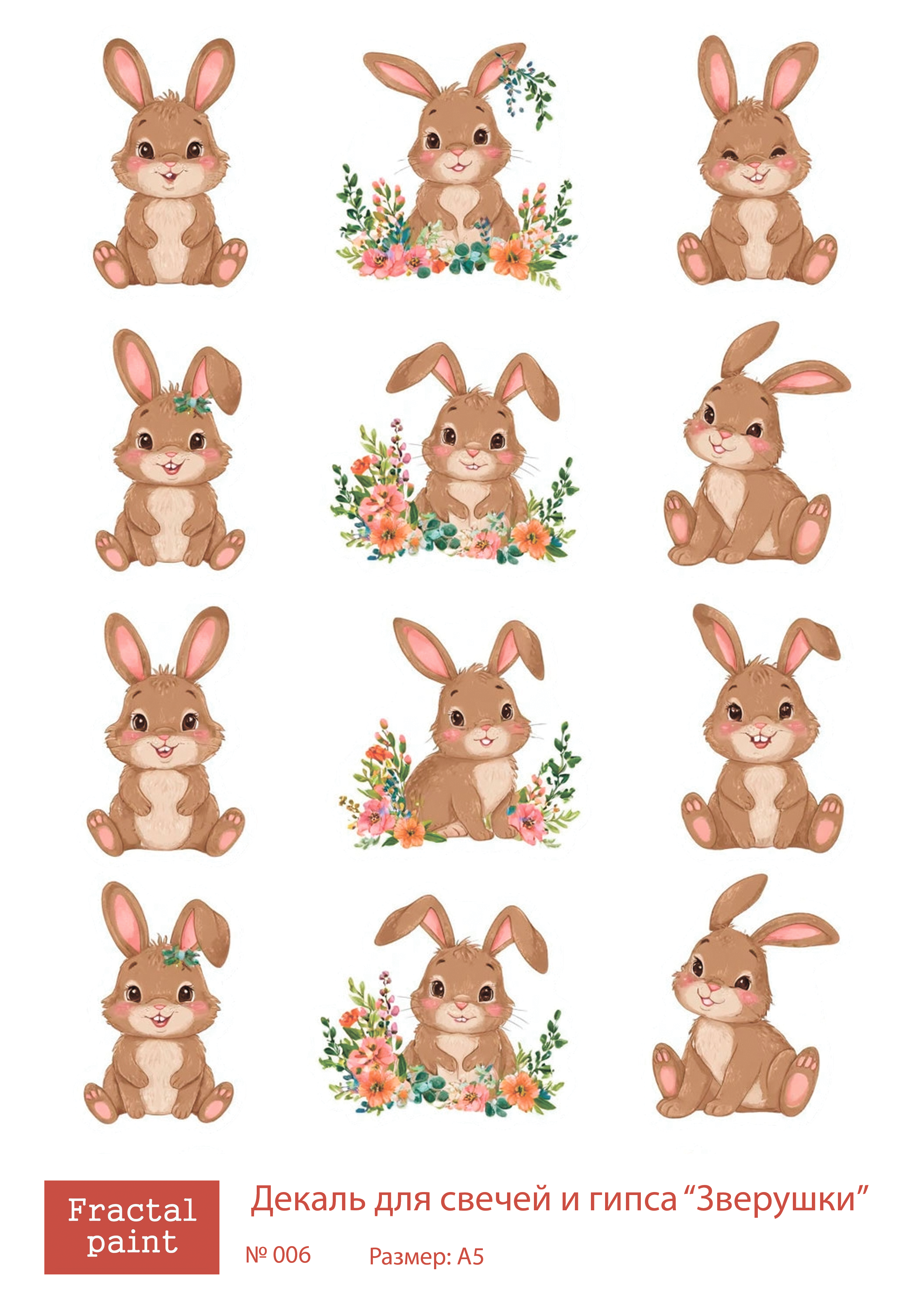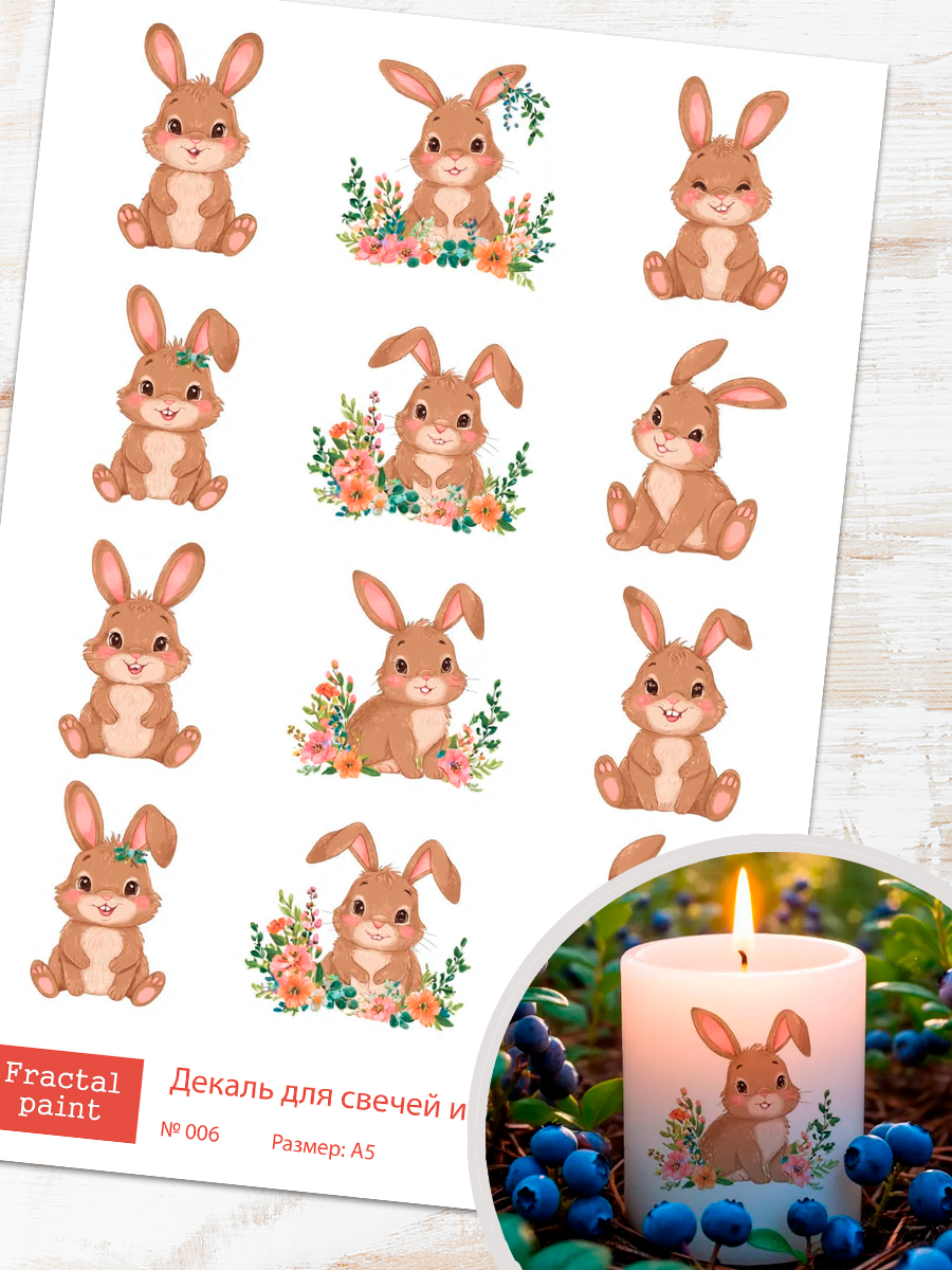 Трансфер переводной - декаль для свечей и гипса зверушки 006 А5