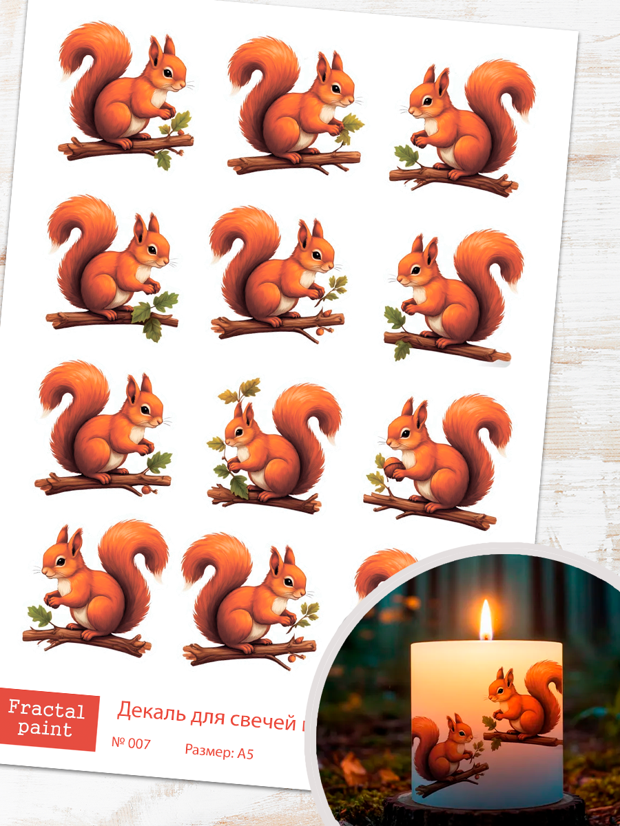 Трансфер переводной - декаль для свечей и гипса зверушки 007 А5