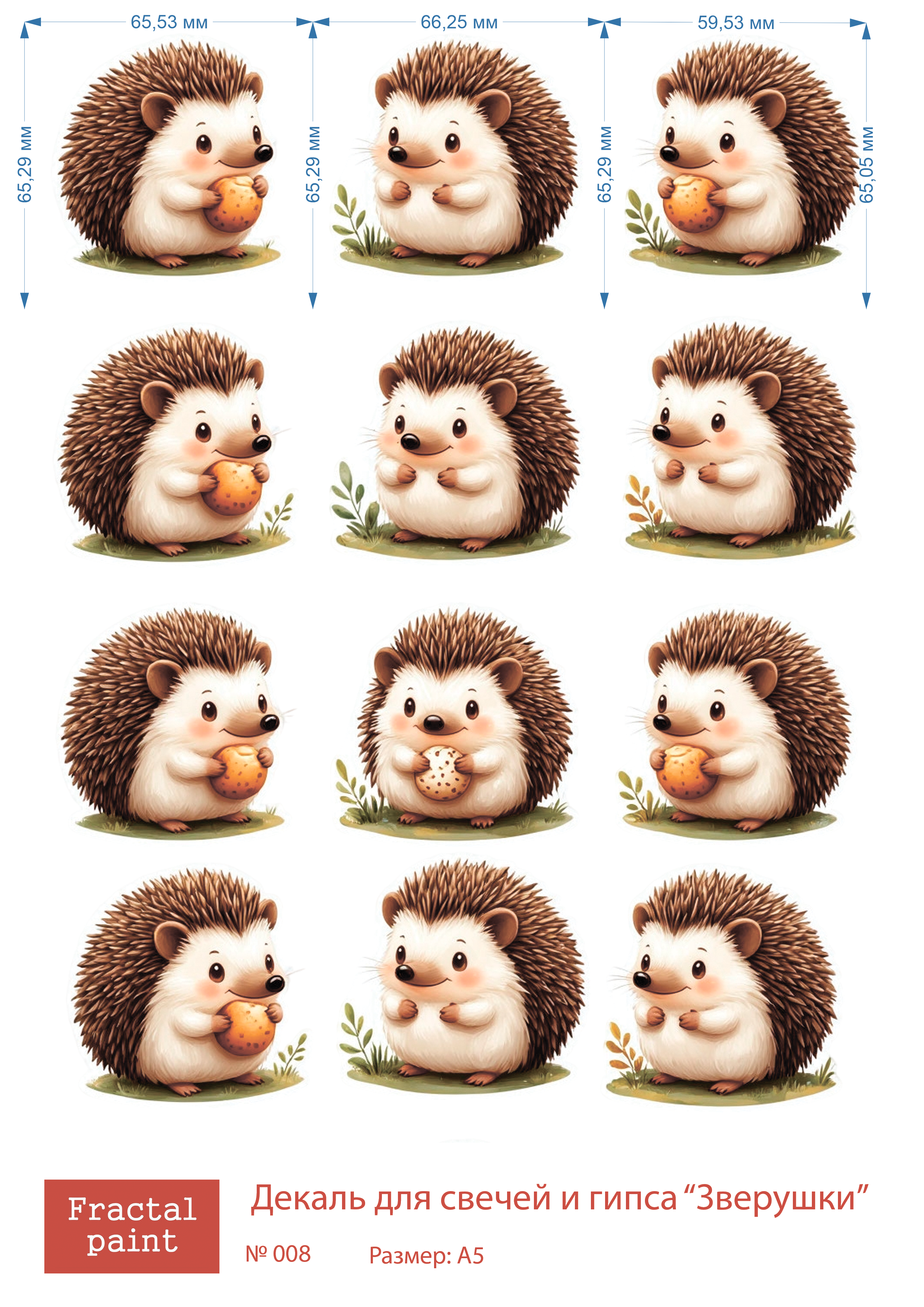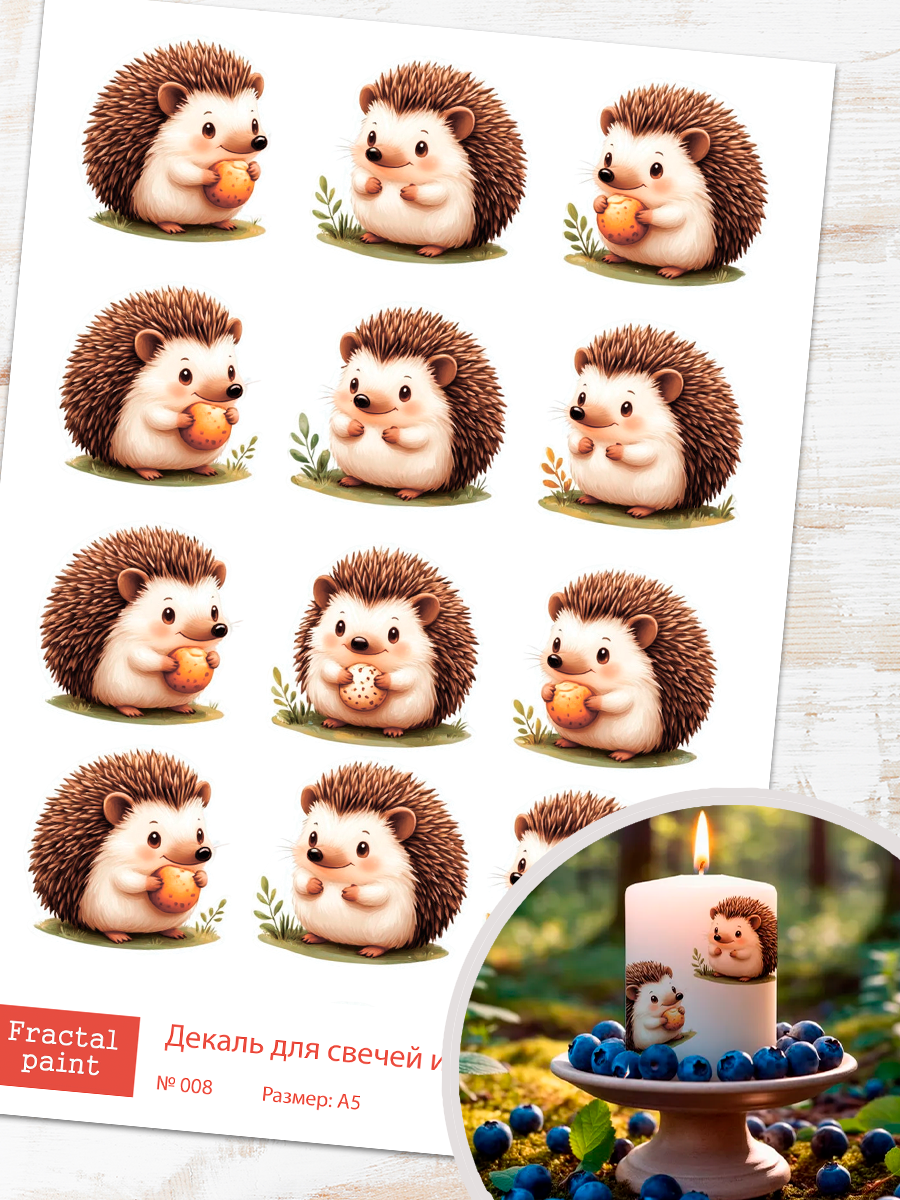 Трансфер переводной - декаль для свечей и гипса зверушки 008 А5