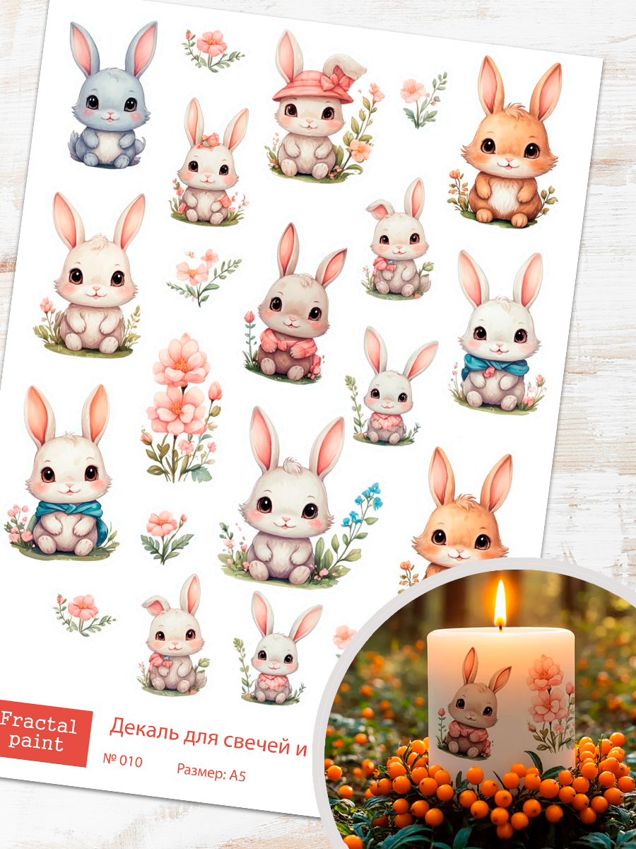 Трансфер переводной - декаль для свечей и гипса зверушки 010 А5