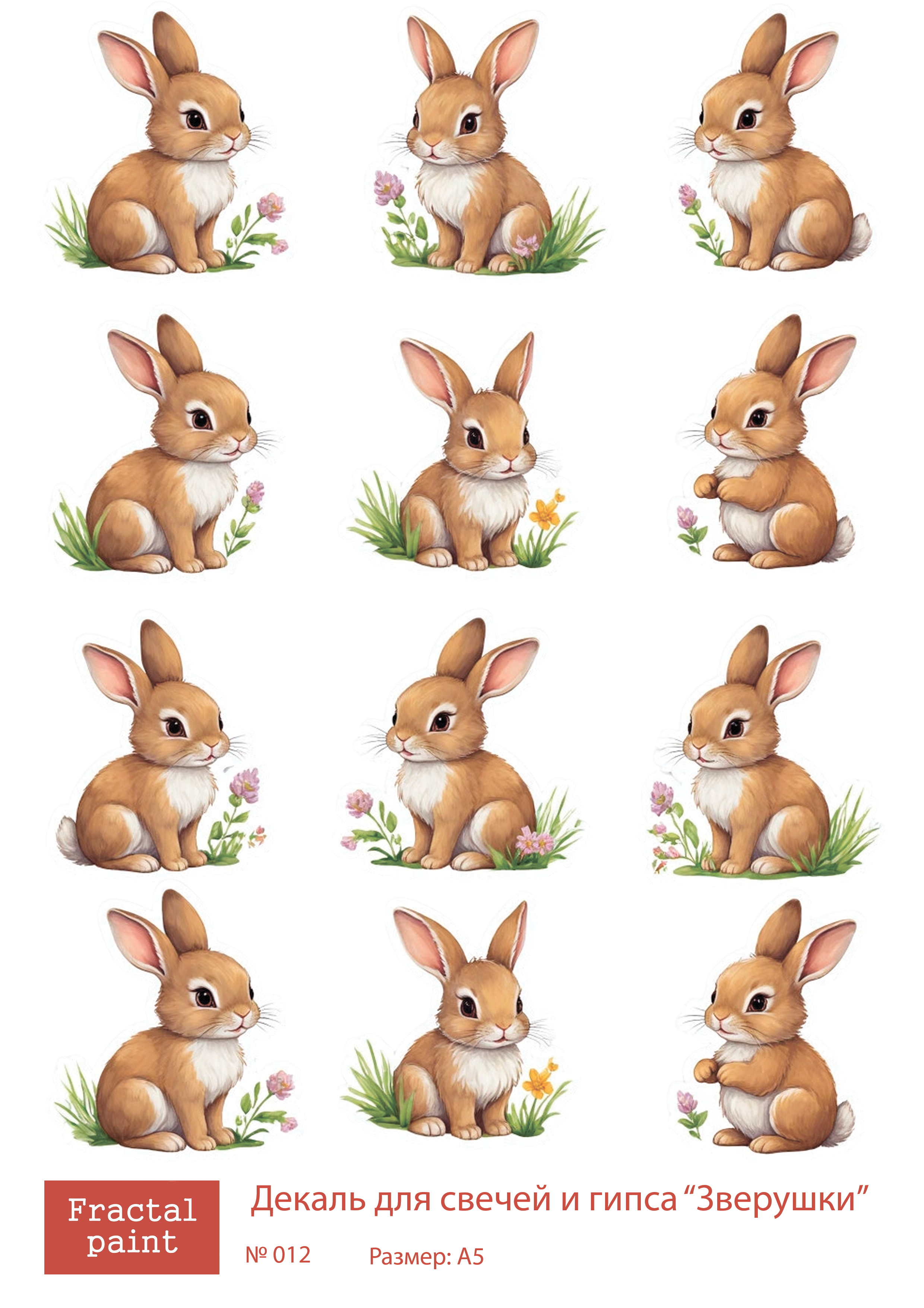 Трансфер переводной - декаль для свечей и гипса зверушки 012 А5