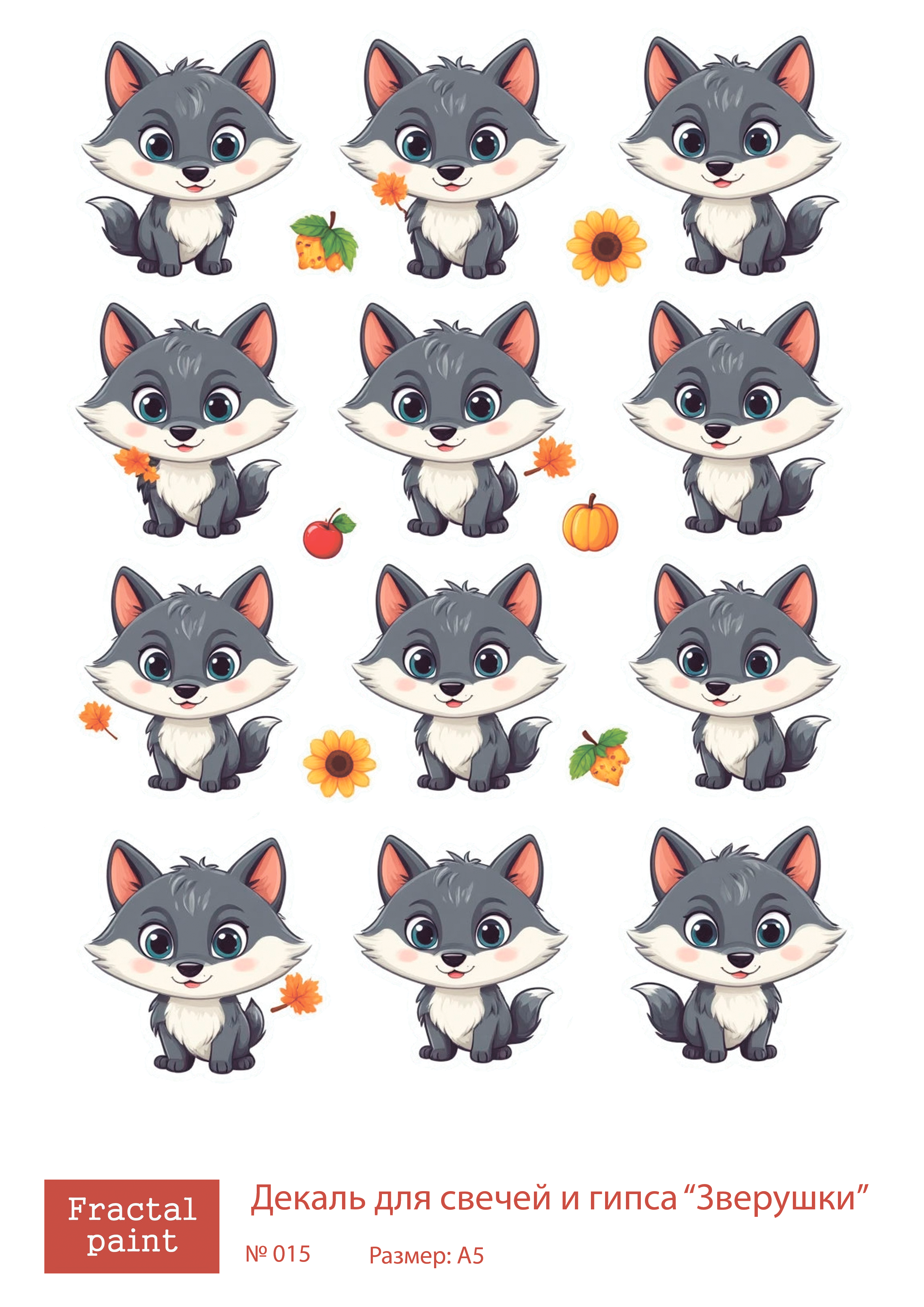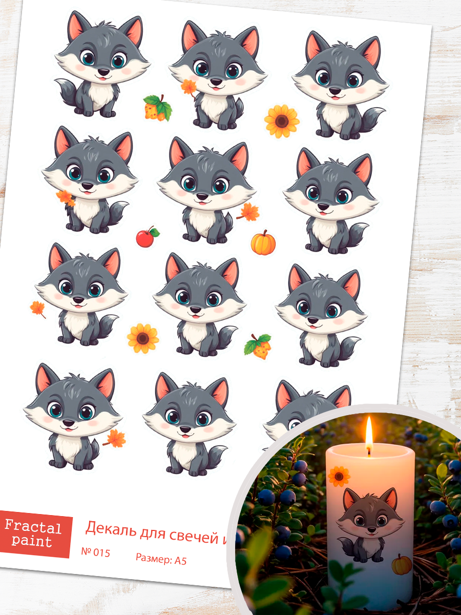 Трансфер переводной - декаль для свечей и гипса зверушки 015 А5