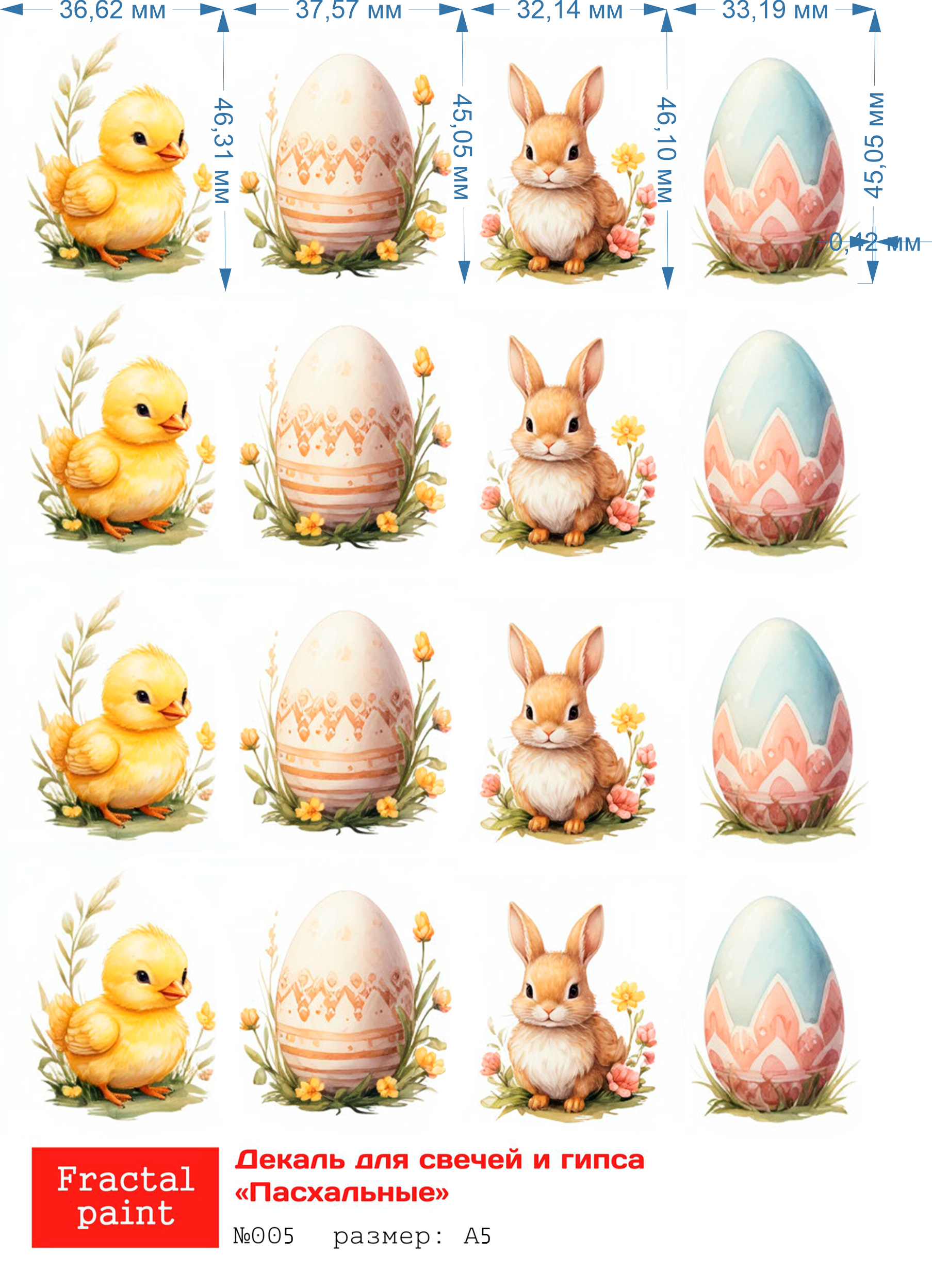 Трансфер переводной-декаль для свечей и гипса пасха 005 А5